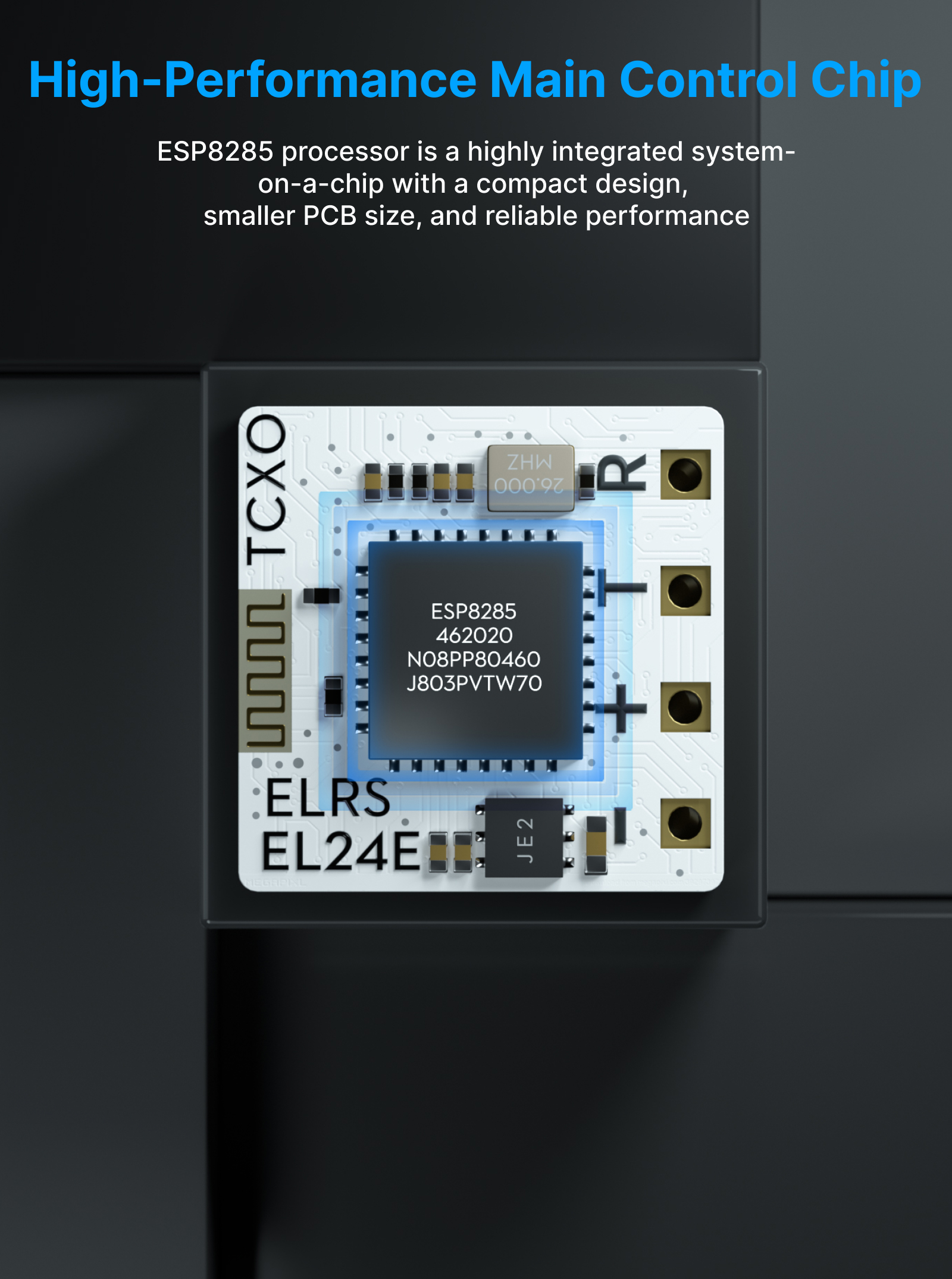 The new Flywoo TCXO 2.4G ELRS utilizes a temperature-compensated crystal oscillator to enhance the accuracy of the MCU clock frequency, thereby improving the performance and reliability of the RC link. It enables longer control distances, allowing users to operate devices within a wider range. This module boasts low latency and high refresh rates.